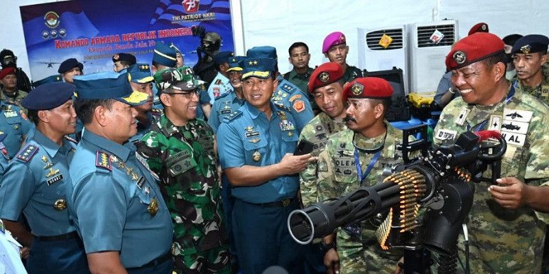ASKARA – Panglima Komando Koarmada Republik Indonesia (Pangkoarmada RI) Laksdya TNI Heru Kusmanto mendampingi Panglima TNI Laksamana TNI Yudo Margono dan Wakil Kepala Staf Angkatan Laut (Wakasal) Laksdya TNI Ahmadi Heri Purwono, meninjau stand-stand pameran TNI Angkatan Laut Fair, bertempat di Monas, Jakarta Pusat, Selasa (26/9).