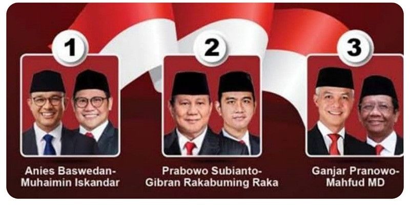 ASKARA – Pasca putusan Mahkamah Konstitusi (MK), Komisi Pemilihan Umum (KPU) telah menetapkan 3 nama pasangan calon presiden dan wakil presiden. Ketiga nama tersebut yaitu pasangan Anies Baswedan – Muhaimin Iskandar, pasangan Prabowo Subianto – Gibran Rakabuming Raka dan pasangan Ganjar Pranowo – Mahfudz MD.