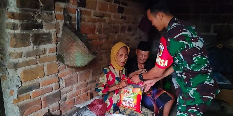 Pada kesempatan kali ini, Serda Cucuk Hermawan saat melaksanakan kegiatan Babinsa Masuk Dapur tidak lupa memberikan bantuan sosial berupa sembako ke Mbah Muntolip.