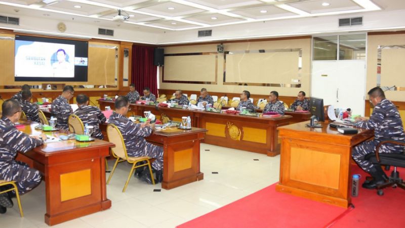 ASKARA – Wakil Komandan Korps Marinir Brigjen TNI (Mar) Suherlan didampingi Pejabat Utama Korps Marinir mengikuti Rapat Koordinasi Perencanaan dan Keuangan (Renaku) II dan Apel Komandan Satuan (AKS) TNI Angkatan Laut tahun 2023 secara virtual, di Ruang Rapat Gedung Agoes Soebekti Mako Kormar, Jalan Prajurit KKO Usman dan Harun no.40, Kwitang, Jakarta Pusat. Selasa (21/11).