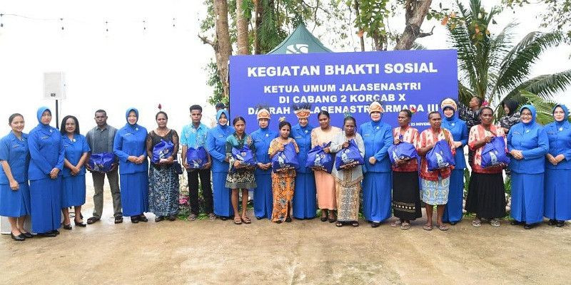 ASKARA – Sebagai wujud kepedulian pada sesama, Ketua Umum Jalasenastri Ny. Fera Muhammad Ali memimpin pelaksanaan Bakti Sosial Jalasenastri, di wilayah cabang 2, Koordinator Cabang X, Daerah Jalasenastri Armada (DJA) III, di Biak Papua, Kamis (23/11) lalu.