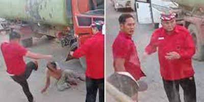 Video berdurasi 39 detik itu memperlihatkan aksi ajudan sang Bupati menarik dan menendang kepala sopir truk sawit hingga oleng.