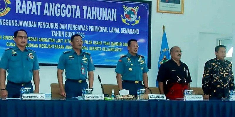 ASKARA – Primer Koperasi Angkatan Laut Pangkalan TNI Angkatan Laut Semarang (Primkopal Lanal Semarang) menggelar Rapat Anggota Tahunan (RAT) Tahun Buku 2023 bertema Dengan Sinergitas Koperasi Angkatan Laut, Kita Bangun Pilar Usaha yang Mandiri dan Handal Guna Mewujudkan Kesejahteraan Anggota Kopal Beserta Keluarganya di Gedung Serba Guna Mandalika, Mako Lanal Semarang. Kamis (18/01).