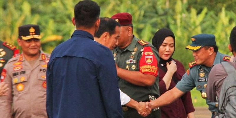ASKARA – Komandan Lanal Semarang Kolonel Laut (E) Joko Andriyanto, S.T., M.Tr. Hanla., M.A.P. turut menyambut kedatangan Presiden RI Joko Widodo dan Ibu Iriana Joko Widodo beserta rombongan Presiden RI di Apron Alfa Lanumad Ahmad Yani Semarang, Selasa (23/01).